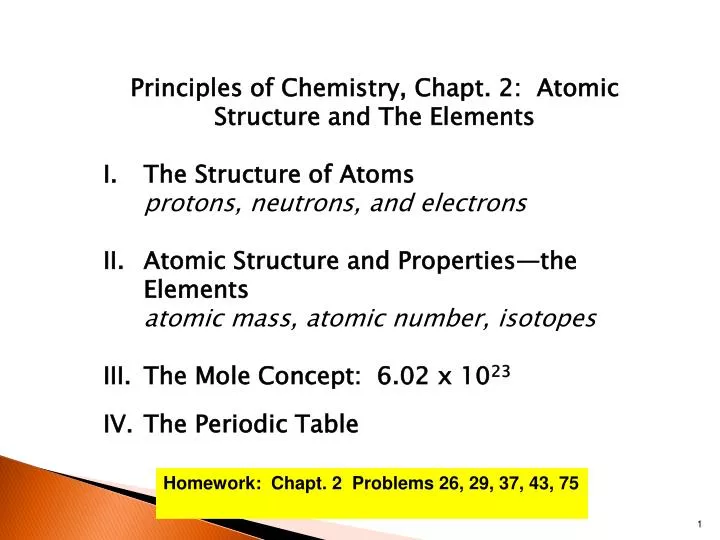 Atomic Structure Principles Of Chemistry I Lecture Slides Docsity